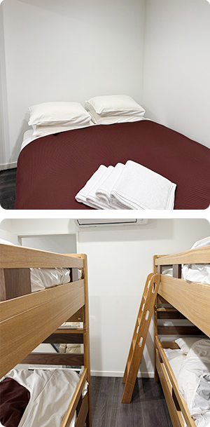 2 bedrooms (Queen size bed x 1, bunk bed x 2)、Living, kitchen
